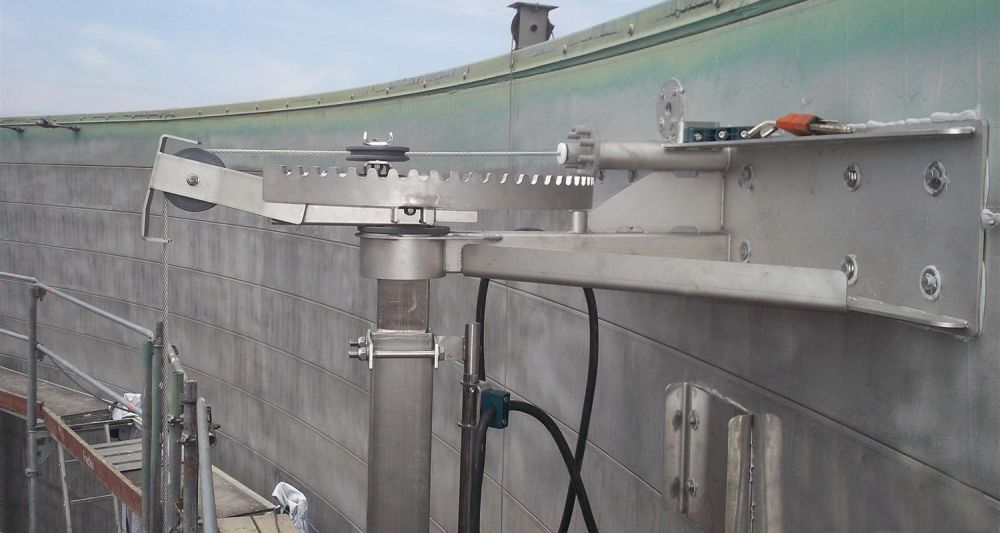 内/外墙壁支架,气密的电缆和绳索装置,这个坚固的装置通过墙壁固定,ss316、Ø8毫米的绳索和调节位置的手轮,刚罐体内壁和支架的距离为60厘米,在水泥罐中的距离为120厘米。